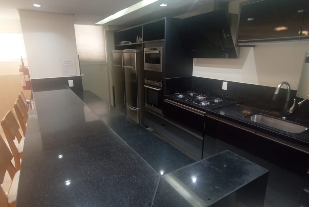 A área social conta com sala ampla para dois ambientes, integrada a uma elegante varanda gourmet, ideal para receber. Cozinha planejada, área de serviço independente e lavabo completam a planta funcional e moderna.