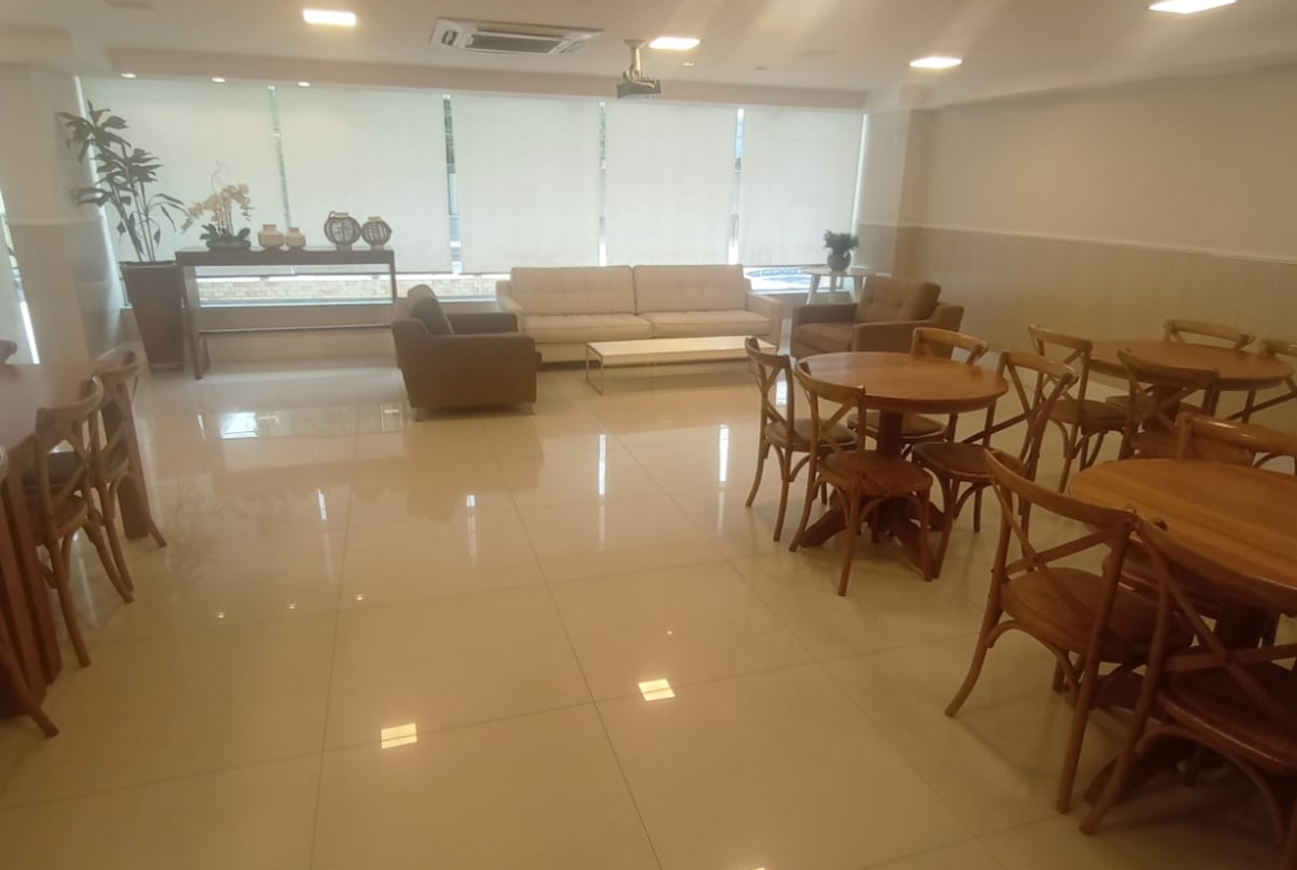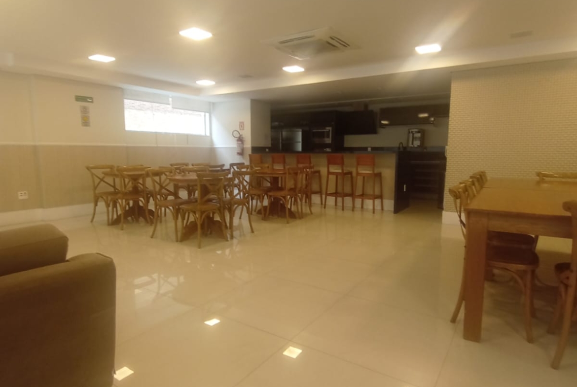 O edifício oferece lazer completo, com piscina, elevadores, portaria 24 horas, acessibilidade e duas vagas de garagem demarcadas.
