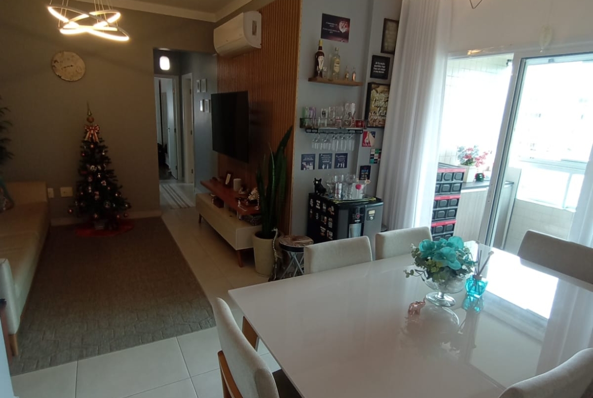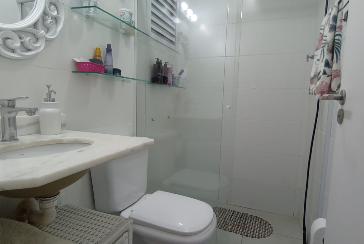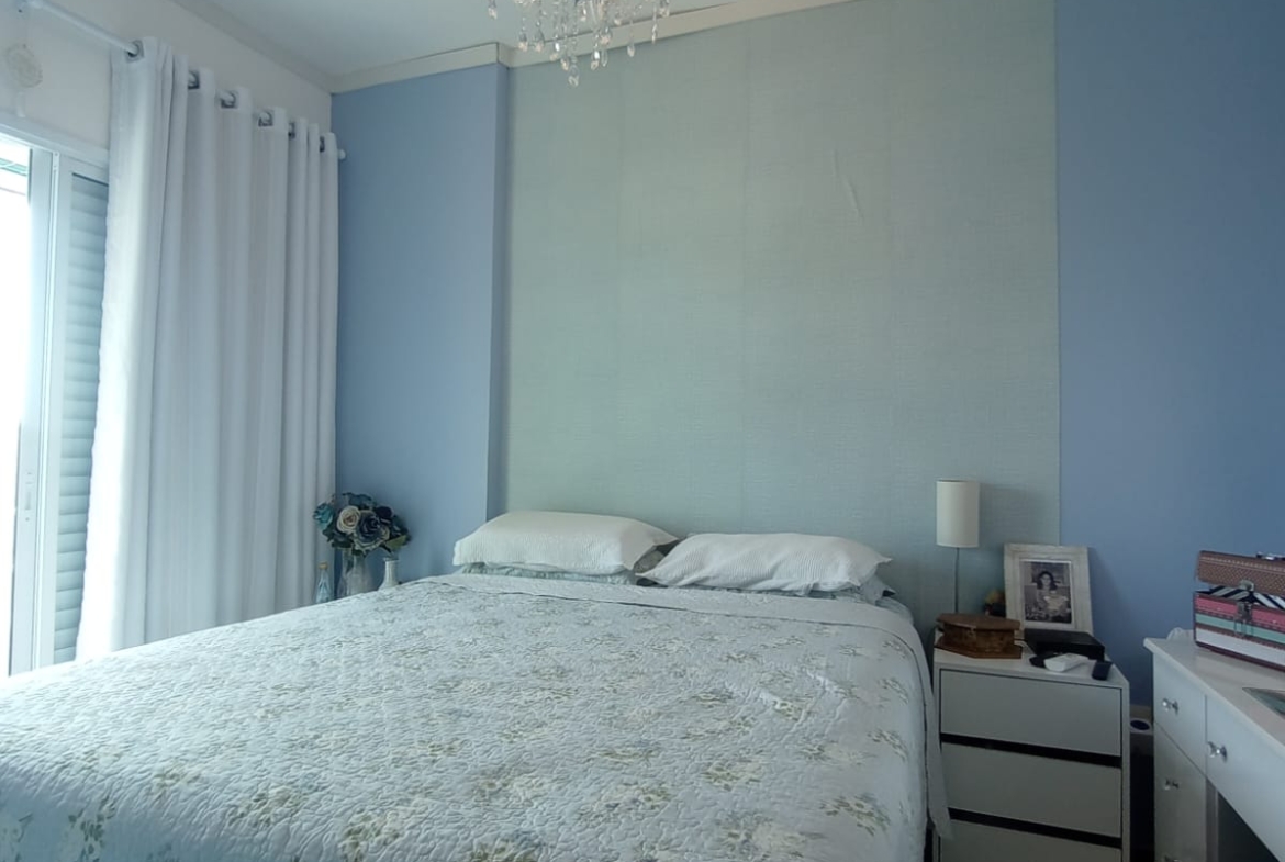 Apartamento no Itararé, São Vicente, com 2 dormitórios, ambos suítes e 1 com closet. Possui 91,62 m², de área útil, ar condicionado, armários planejados nos closets, banheiros e cozinha. O prédio oferece área de lazer completa com piscina, academia, churrasqueira, quadra, brinquedoteca e salão de festas. Conta com elevador, portaria 24 horas e 2 vagas de garagem demarcadas. Está a duas quadras e meia da praia, em excelente localização em SV !