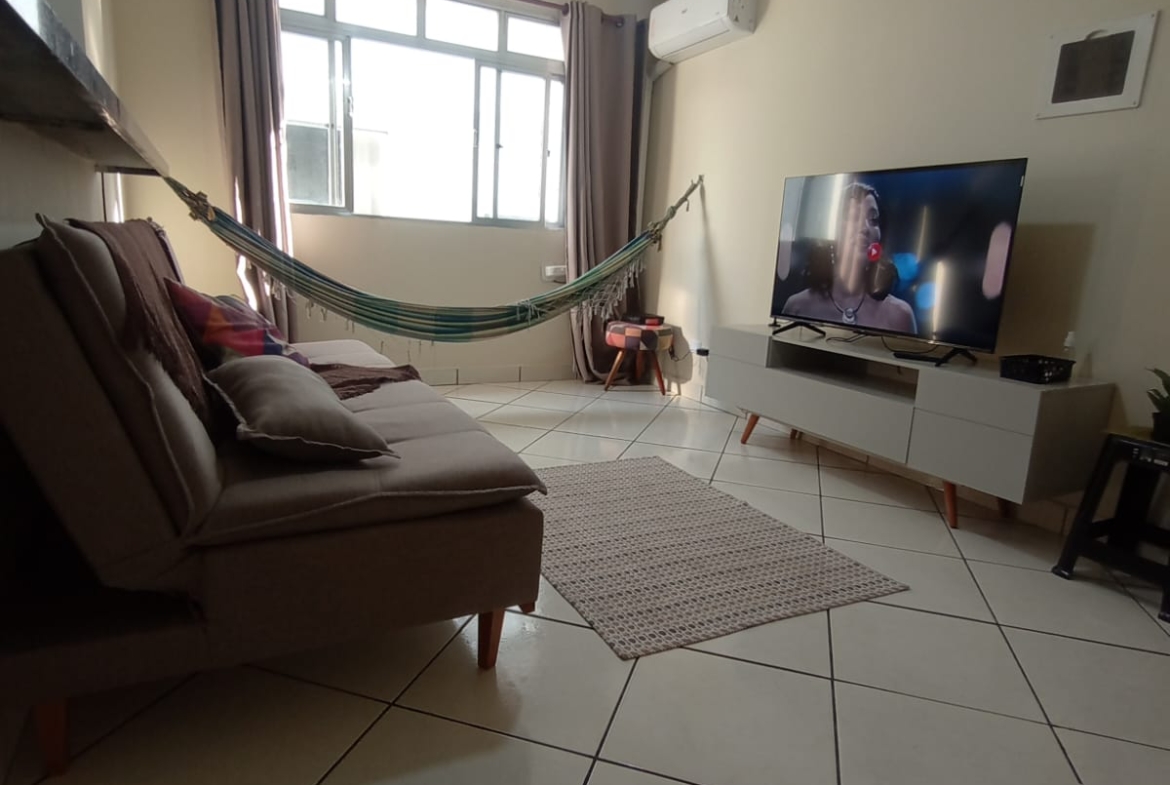Apartamento totalmente reformado de frente porteira fechada, a apenas duas quadras da praia, no bairro Boa Vista, em São Vicente!